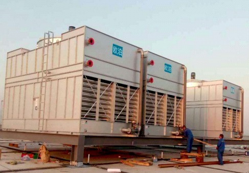 The square cross-flow cooling tower uses two side air intake and the top fan to make the air exchange with hot water through the fillers on both sides of the tower, and then the hot and humid air is d