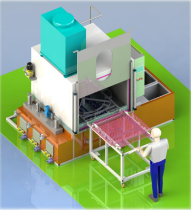 ●旋转托盘,可容纳不同规格工件,清洗量大,速度快。